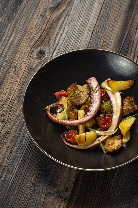 CHORWACKA OŚMIORNICA PIECZONA Z ZIEMIANKAMI I CHLEBEM ( przepis Marcina Budynka)